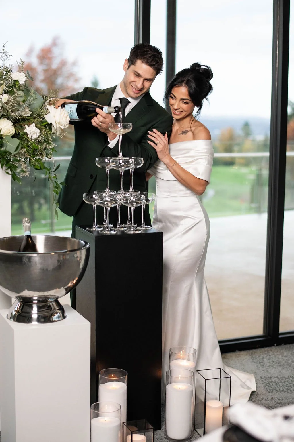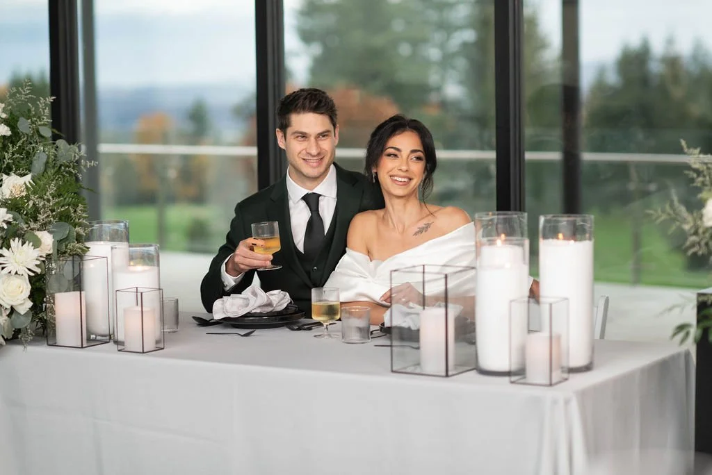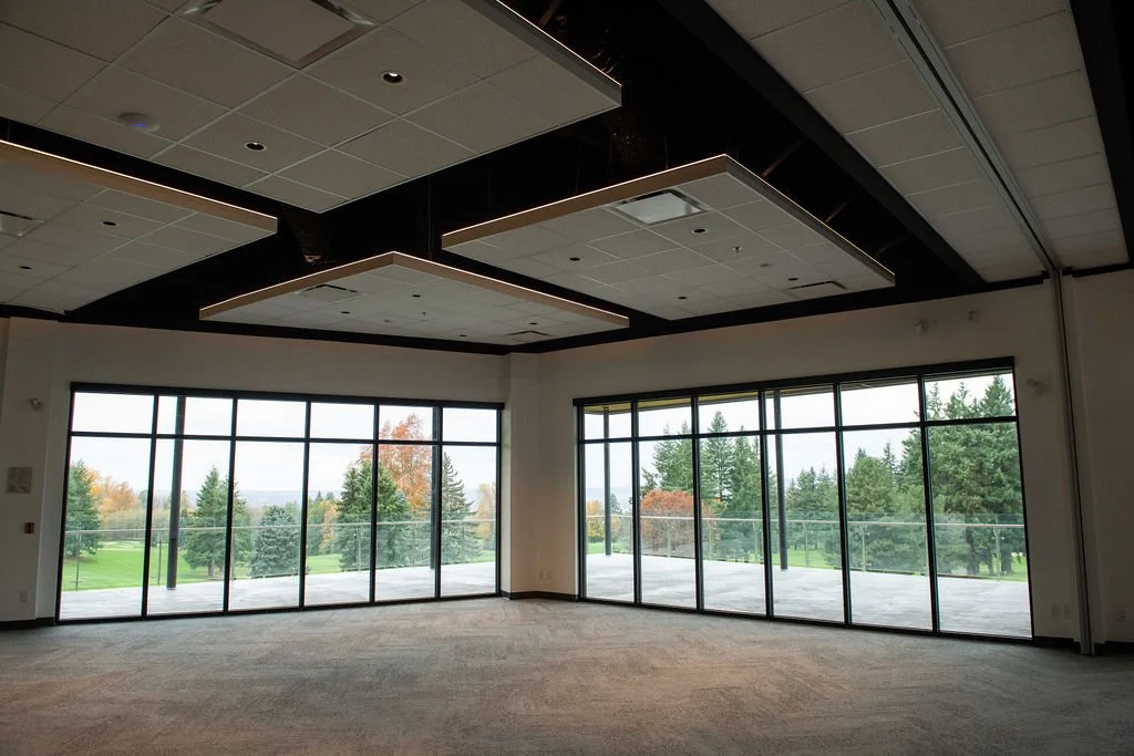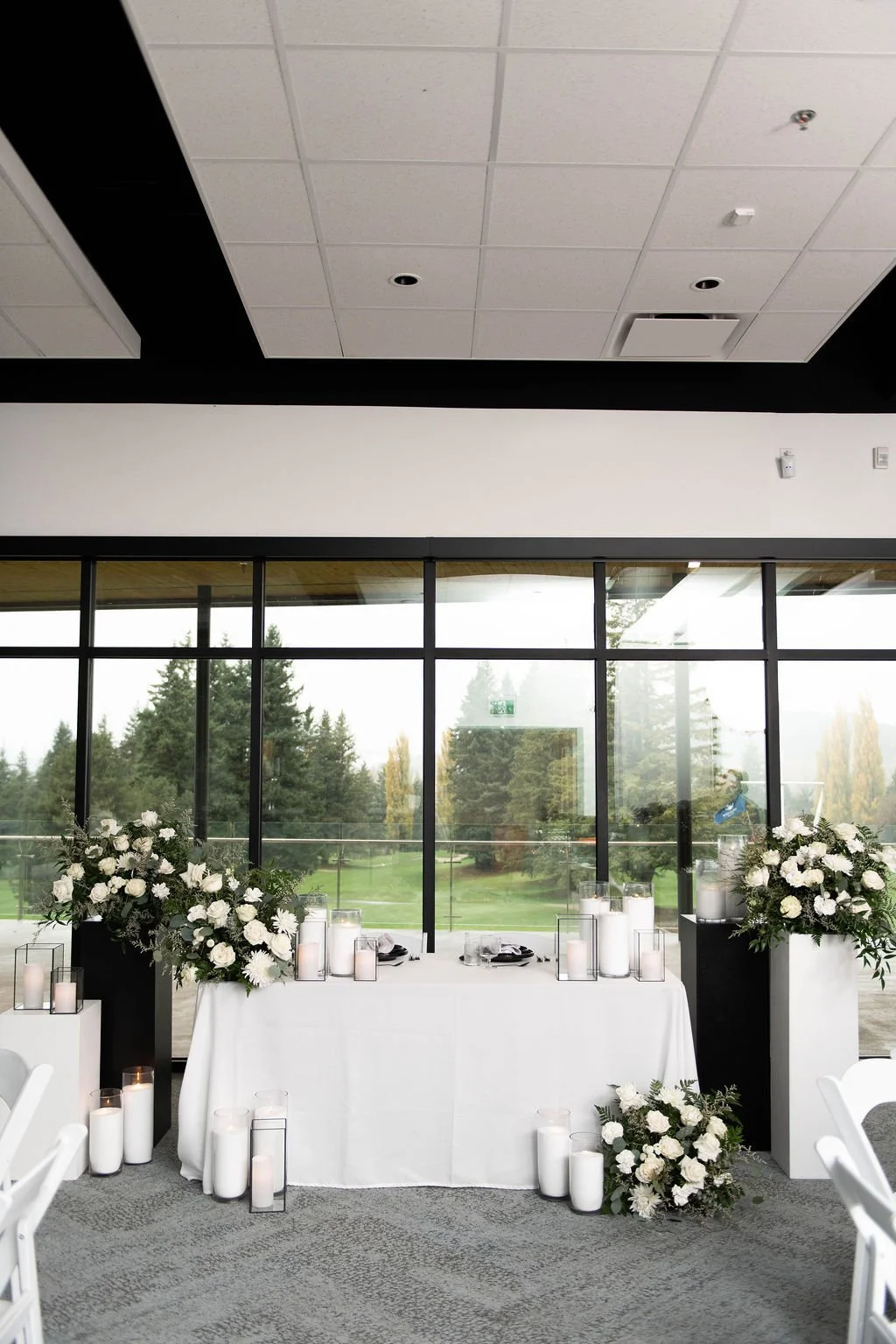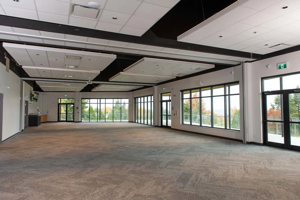 The Fairway — a bright, contemporary event space nestled above the greens of Ledgeview Golf Club. Framed by floor-to-ceiling windows and sweeping views of the Fraser Valley, this venue blends natural beauty with thoughtful design to create an elevated, welcoming setting for any occasion.